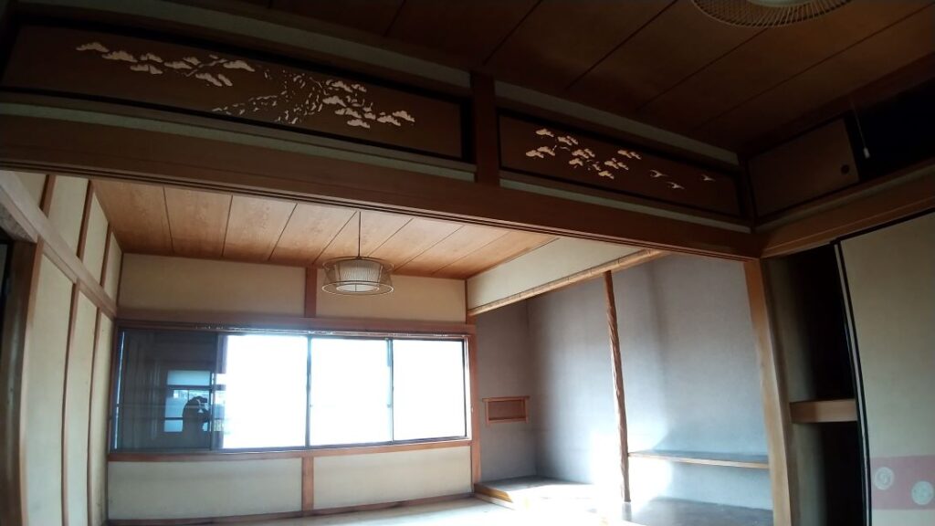 - 垂れ壁部分は開放的にしたい為撤去 欄間は外して引き渡して欲しい