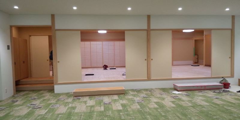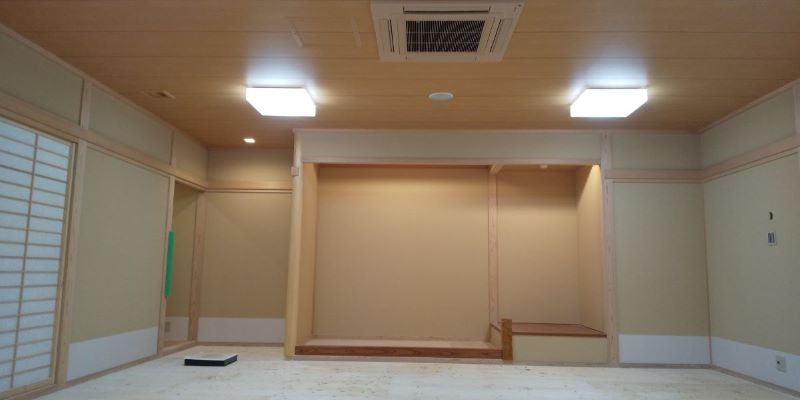 大手ゼネコン様からのご依頼で新校舎建設工事の一部ワンフロワーに茶道部の使用する茶室施工工事のご依頼があり工事をさせて頂きました。設計士さんのデザイン力に只々関心させられた現場となりました。
