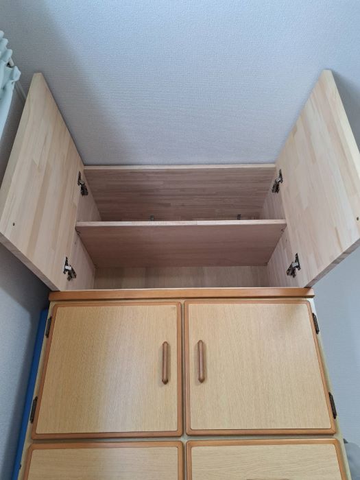 - タンス上にもサイズを合わせて天井迄収納を作らせて頂きました。